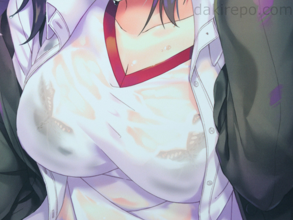 大きなおっぱい、脱ぎかけの黒いパンティ、濡れて透けた体操着がエロいです。