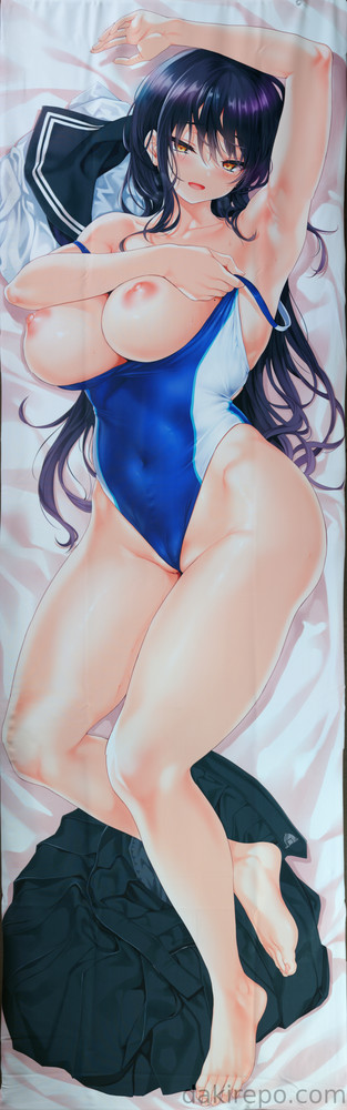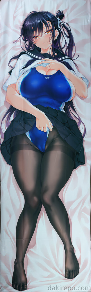 表面は黒ストッキング、学生の下に競泳水着を着たデザイン、裏面は競泳水着を着ておっぱい部分を露出しているデザインです。