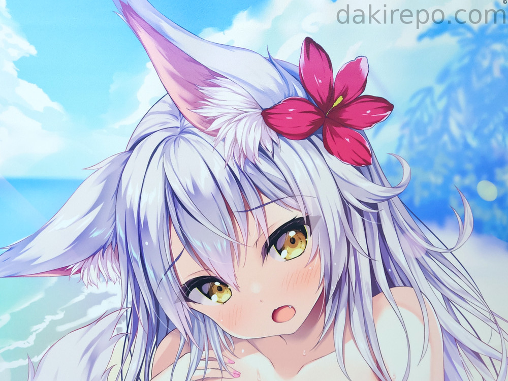 ビキニはだけさせたケモミミ女の子のイラストです。