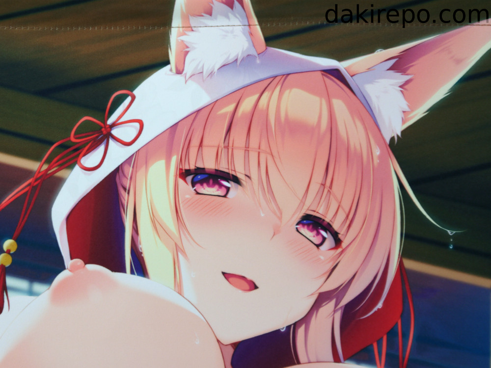 着物服をはだけさせているケモミミ女の子のイラストです。