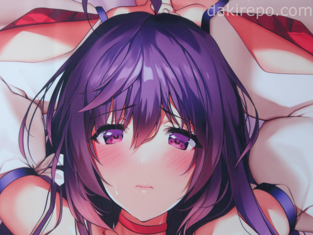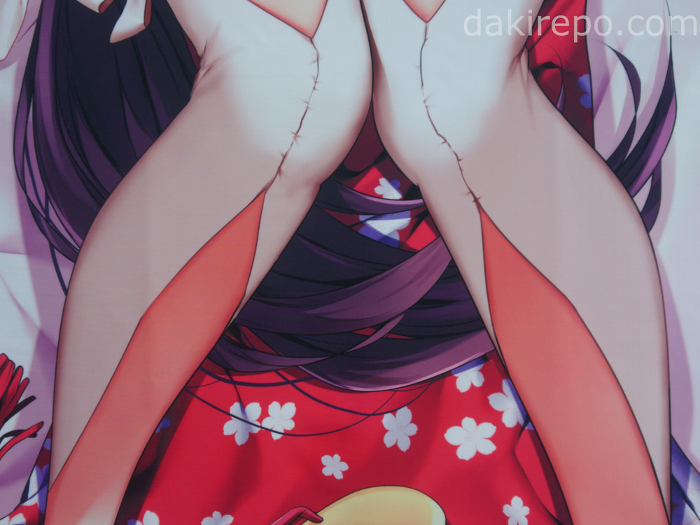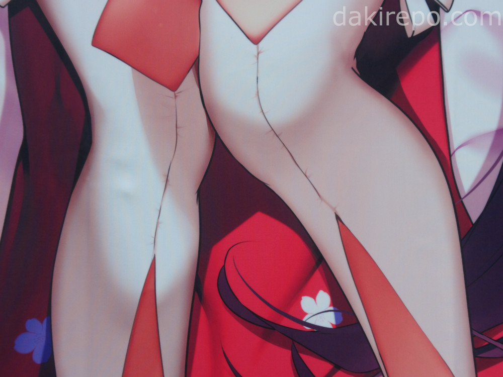 抱き枕カバーはフレス社製です。材質は厚みのあるアクアプレミアでふわふわした触り心地です。引っ張ると伸び柔軟性があります。