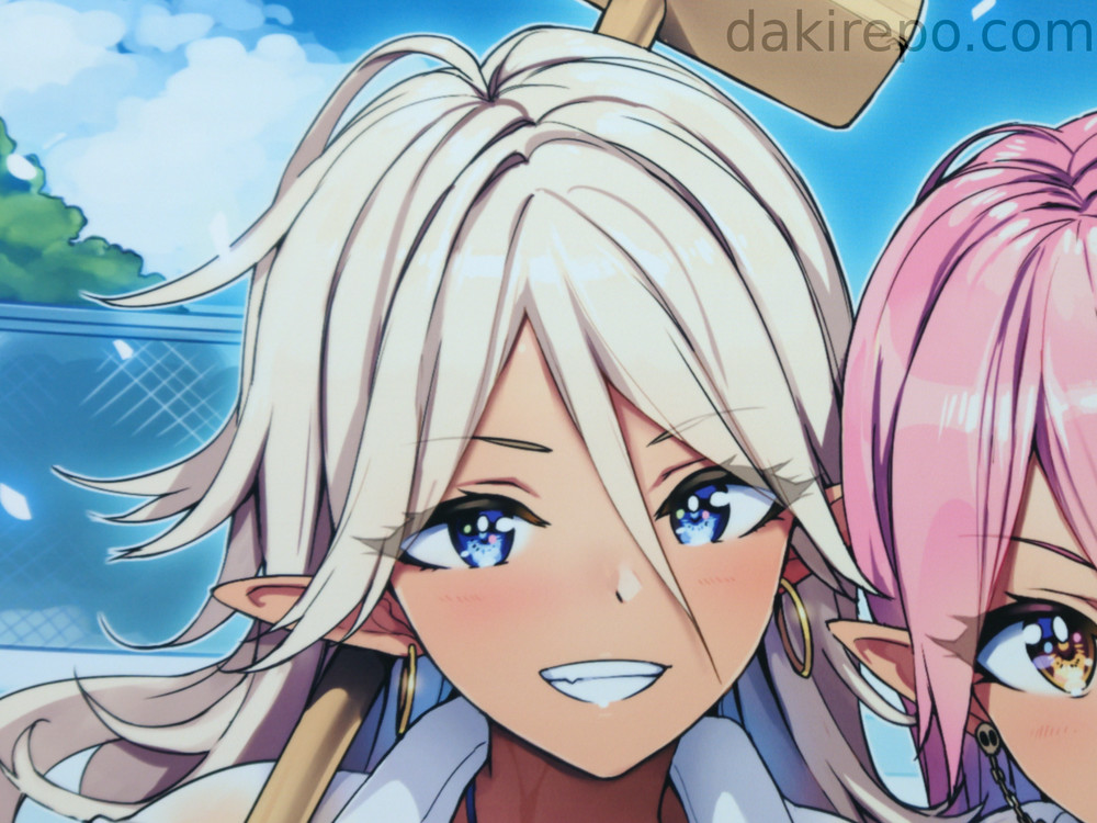 学校のプールで濡れて透けた学生服を着たエルフ耳の女の子のイラストです。